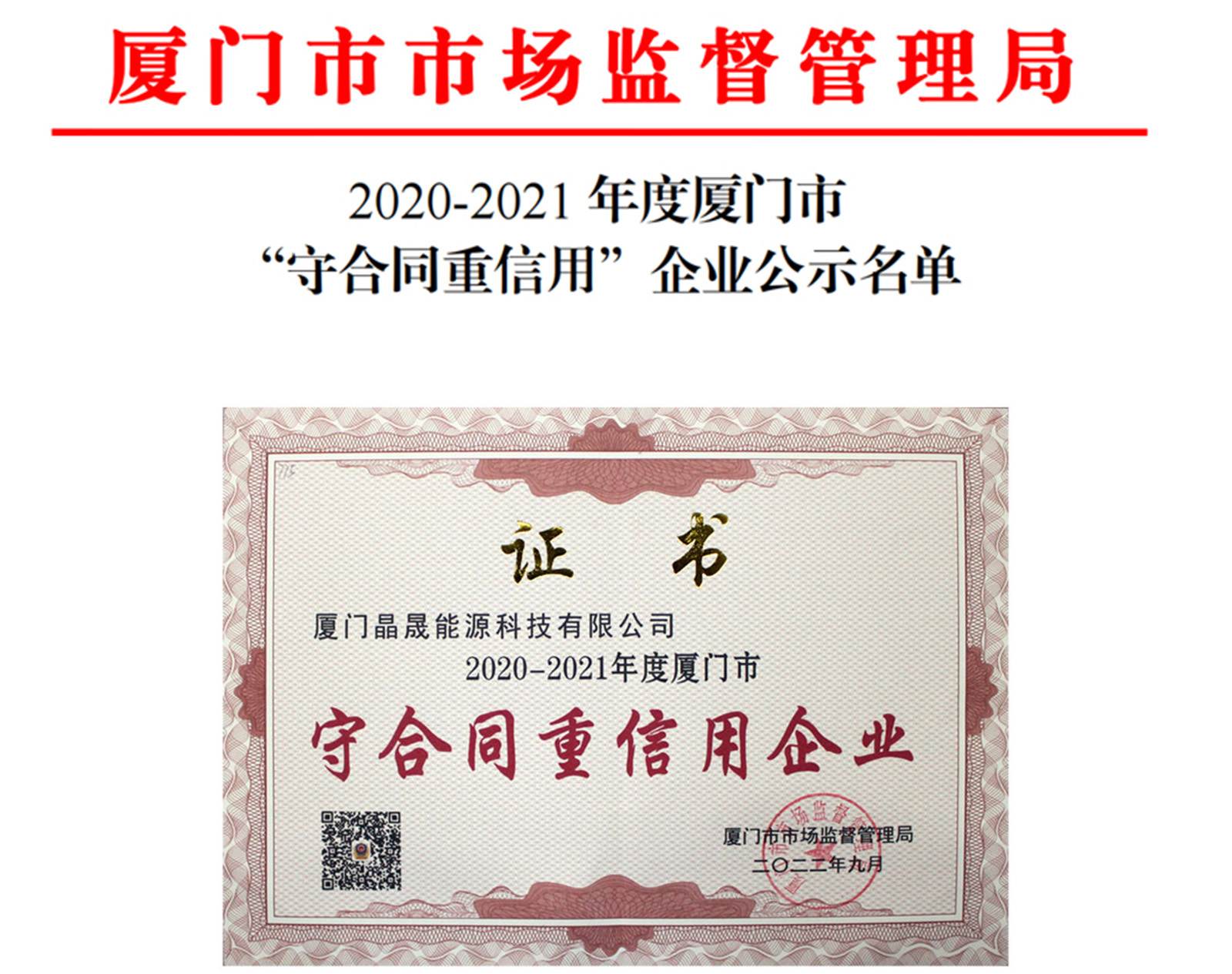 ソーラーファーストグループは、厦門市場監督管理局より2020-2021年度「契約履行・信用履行企業」の認定を取得しました。この名誉ある認定は、同社が最近取得した国家ハイテク企業認定に続くものです。
