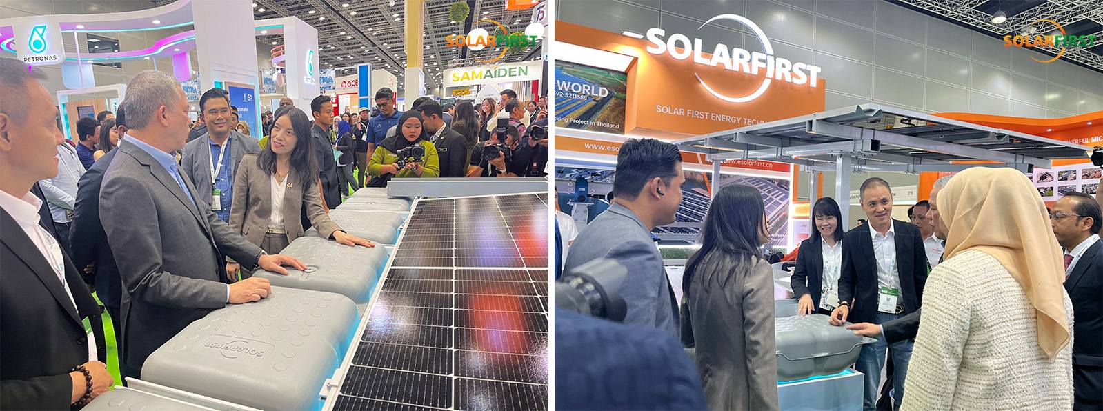 イベント期間中、マレーシアのエネルギー転換・水資源管理大臣であるYBダト・スリ・ファディラ・ユソフ氏とサラワク州副首相がソーラーファーストの展示スペースを訪れました。葉松平会長と周平CEOが代表団を迎え、活発な議論を行いました。