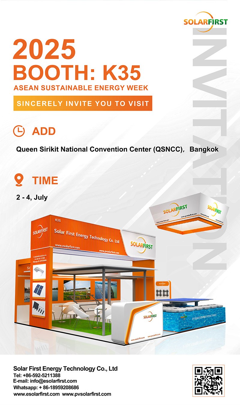 ソーラーファーストグループは、バンコクのクイーンシリキット国立コンベンションセンター(QSNCC)で開催される「アジア持続可能エネルギーウィーク2025」(7月2日~4日)に参加します。タイを拠点とするこのプレミア展示会では、太陽光発電、エネルギー貯蔵、持続可能な輸送分野の世界的リーダーが一堂に会し、最先端のエネルギーソリューションを探求します。ブースK35にお立ち寄りいただき、東南アジア市場向けにカスタマイズされた高強度モジュール式太陽光発電架台システムをぜひご覧ください。