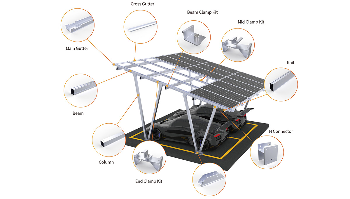 アルマイト処理されたアルミニウムAL6005-T5とステンレス鋼SUS304を組み合わせたこのソーラーカーポートは、軽量で耐腐食性に優れ、最大60m/sの風荷重と1.4kN/m²の積雪荷重に耐えられるように設計されています。バタフライ、ダブルピッチ、シングルピッチ(WタイプとNタイプ)など、複数のデザインタイプをご用意しており、様々な敷地や外観の好みに合わせて、ソーラーカーポートを柔軟に設計できます。