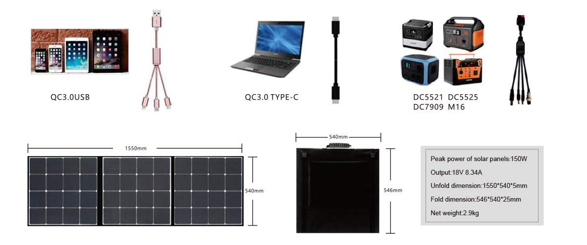 直接充電式ポータブル太陽光発電システムは、高効率折りたたみ式ソーラーパネル(ピーク出力150W)を搭載し、ETFE防水・耐腐食性素材を使用することで、待ち時間なしのプラグアンドプレイ直接充電を実現します。インテリジェント回路は安定した5V電圧を出力し、携帯電話やデバイスの充電ニーズに完璧に適合し、特に屋外キャンプやハイキングなどの探索シーンに最適化されています。