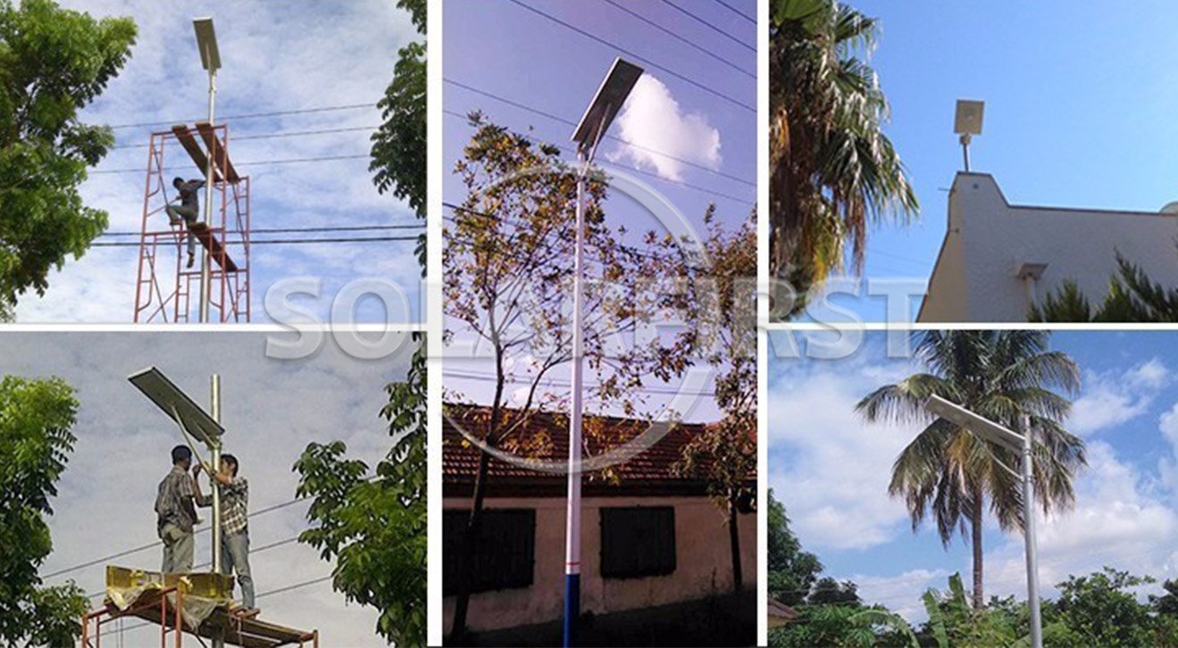 ソーラー街路灯システムは、大容量リチウム電池(寿命5~8年)を採用し、コントローラーと電池を一体化した設計により、配線工事不要で迅速な設置が可能です。柱上設置型の電池配置により、給電距離が短縮され、エネルギー損失が低減し、盗難防止性能も向上します(地下設置方式と比較)。省エネ・環境に配慮した道路照明として最適化されています。