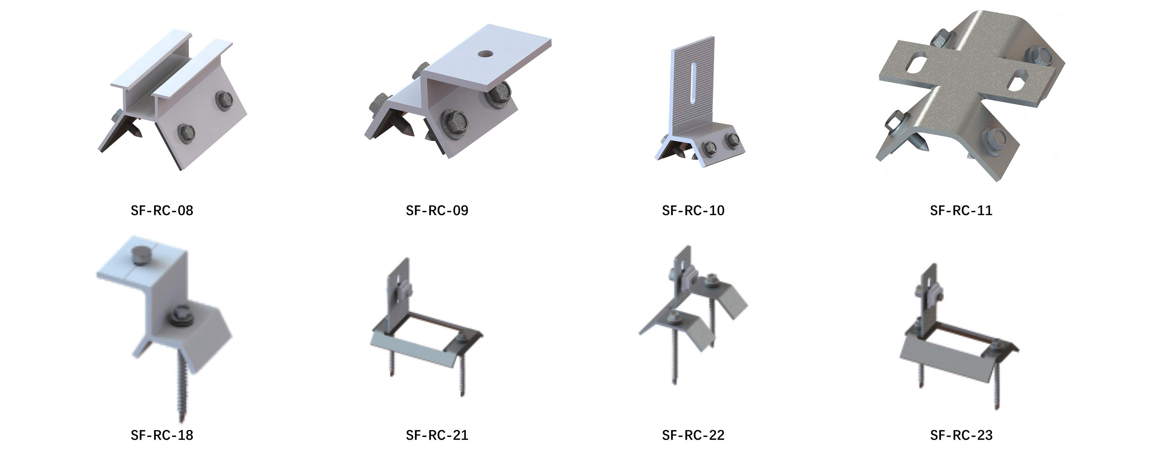 台形ルーフクランプ付きSFメタルルーフマウントは、台形型金属屋根システム向けに特別に設計された、特殊な台形ソーラーメタルルーフマウントソリューションです。この革新的なソーラールーフマウントキットは、精密に設計された部品を備えており、屋根への穴あけを必要とせずに、様々な台形屋根プロファイルにしっかりと固定できます。